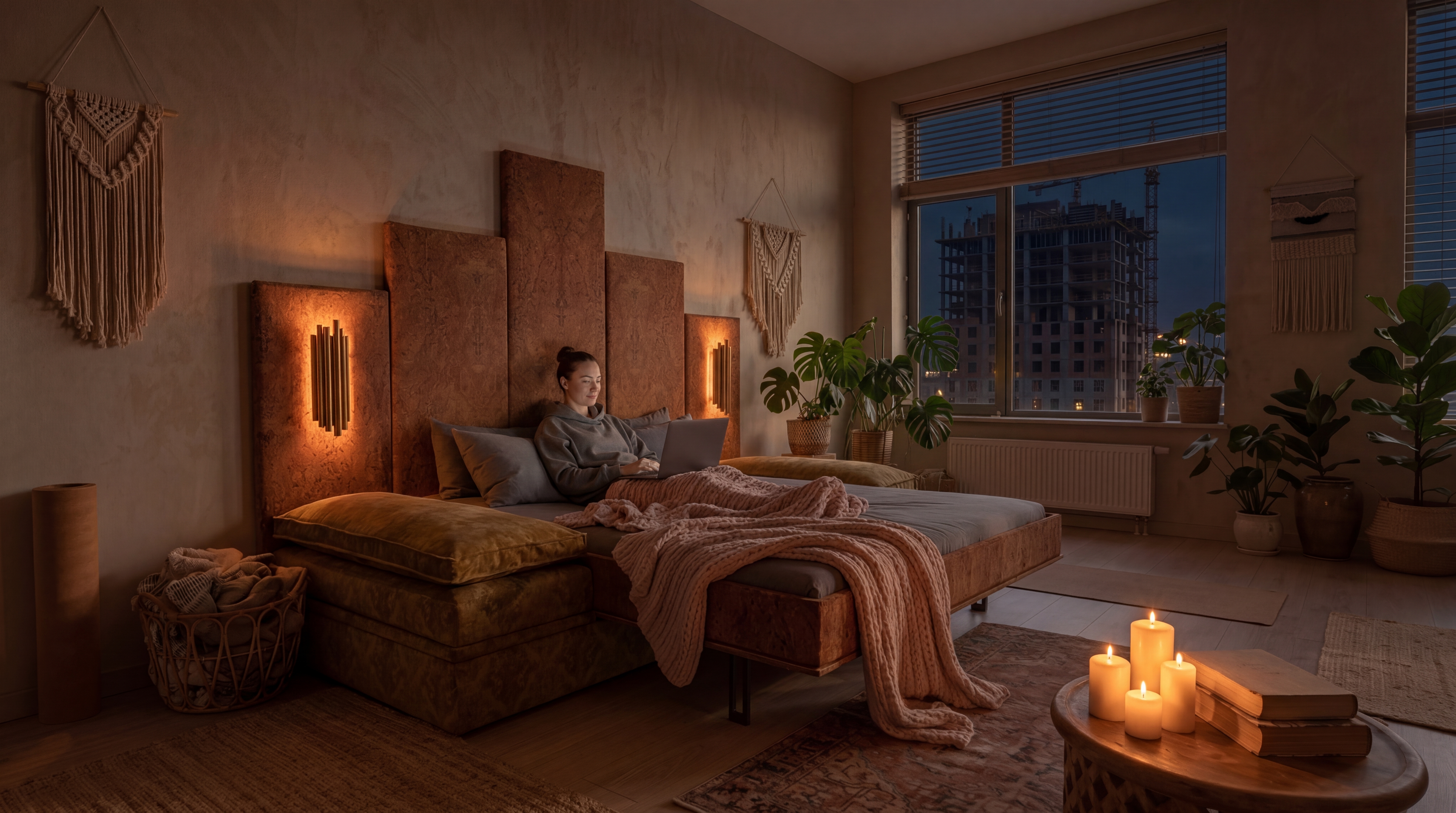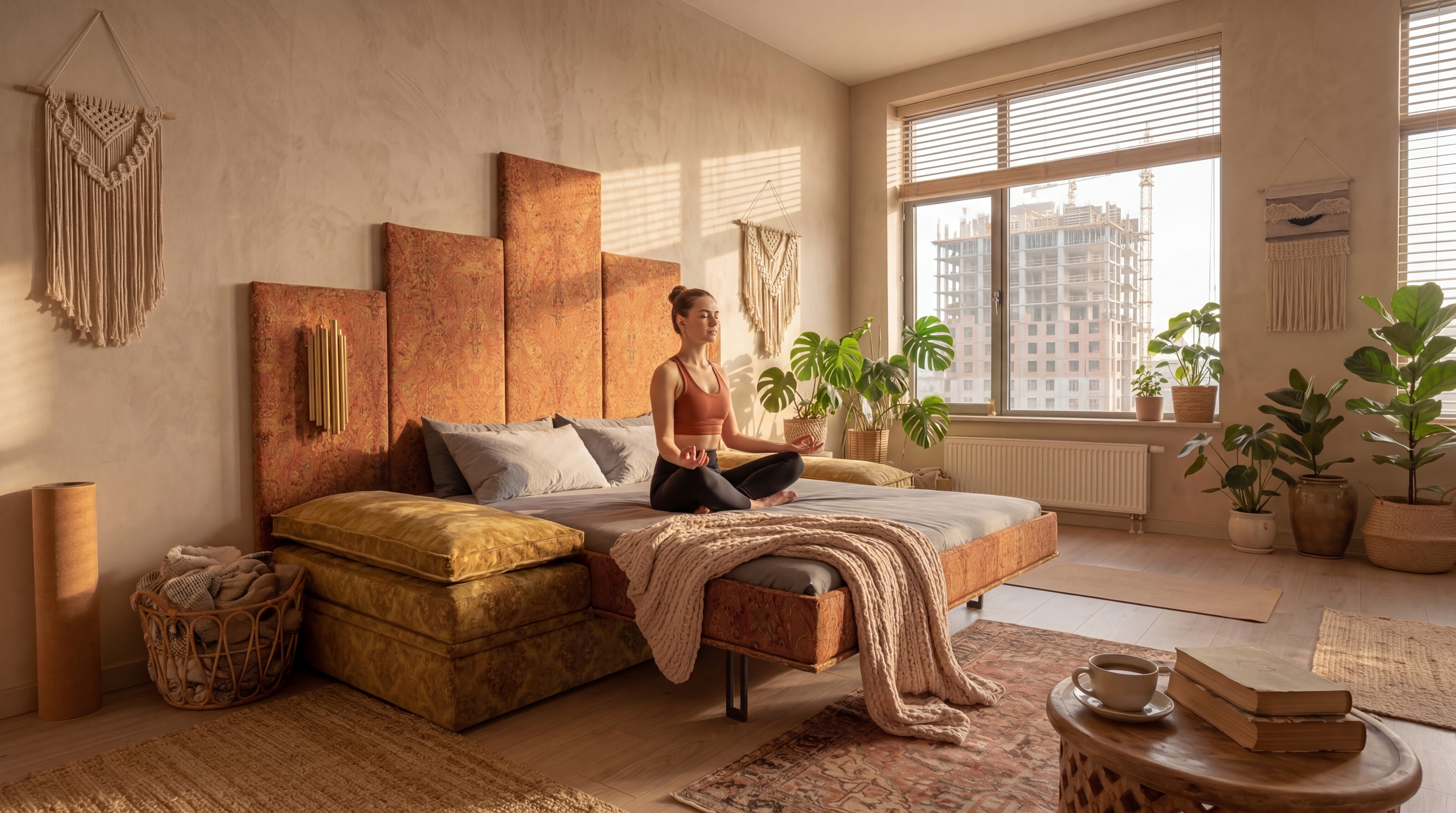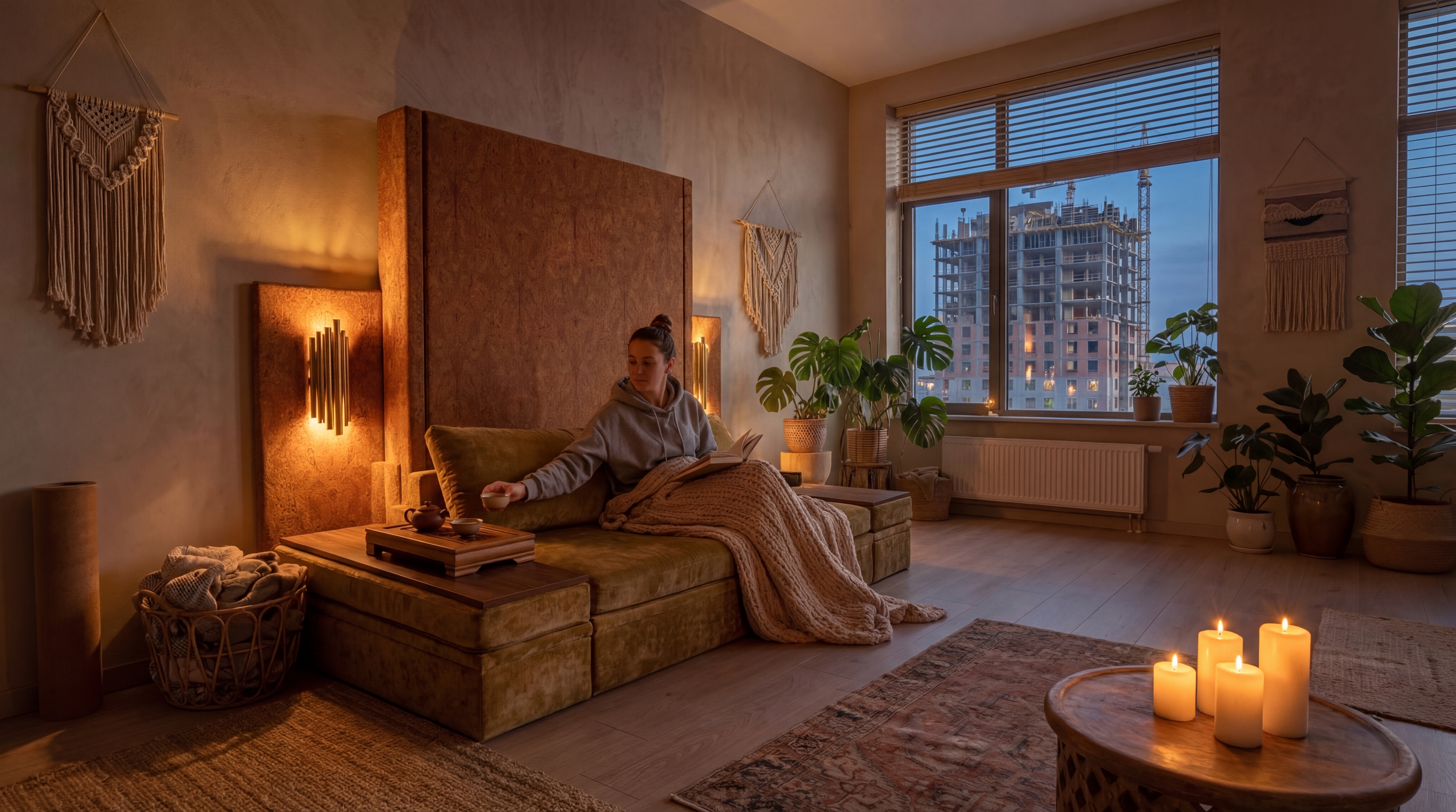 Днем кровать убирается, освобождая место для игр. Никакой громоздкой мебели — только счастливый ребенок на ковре.