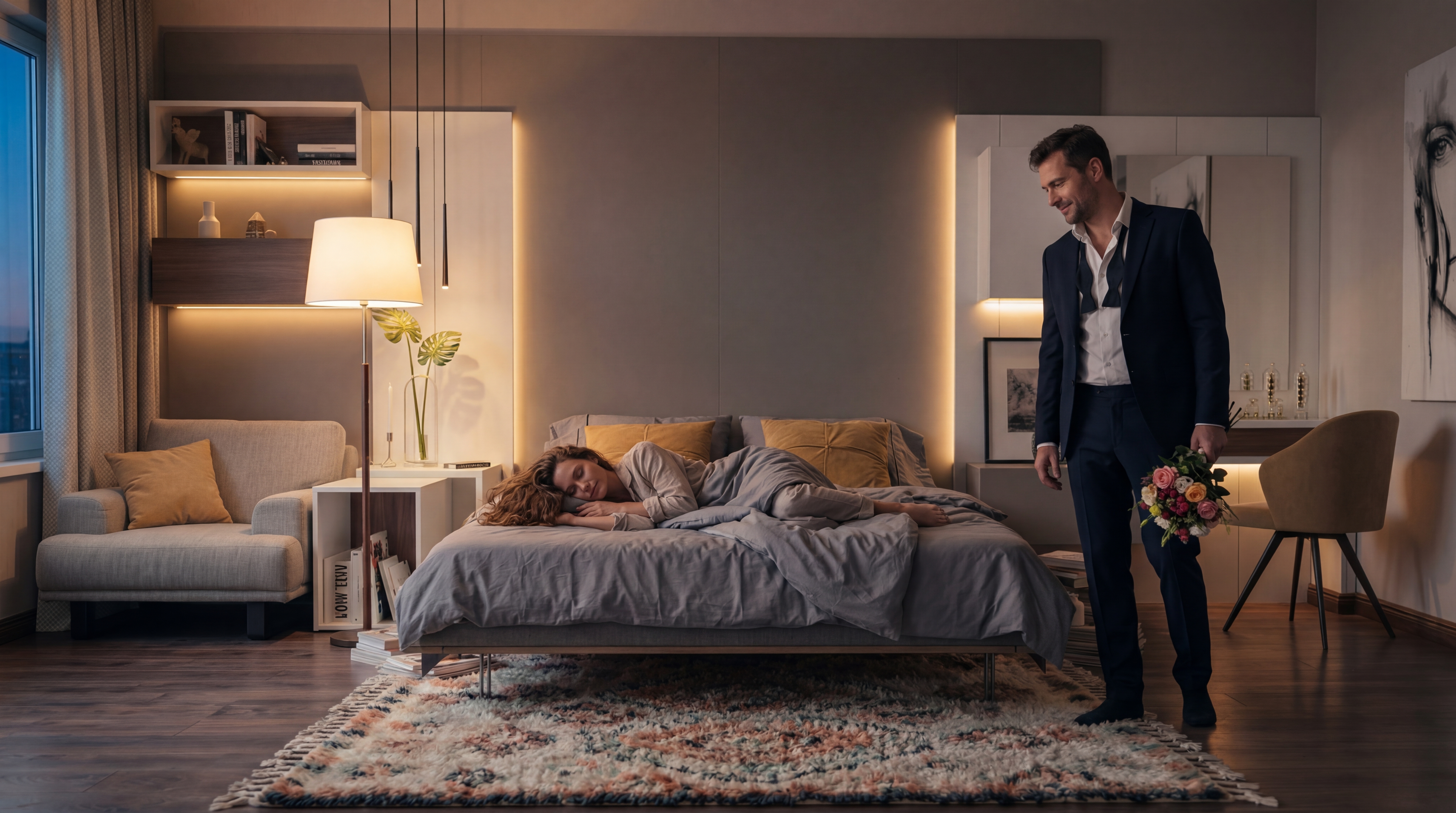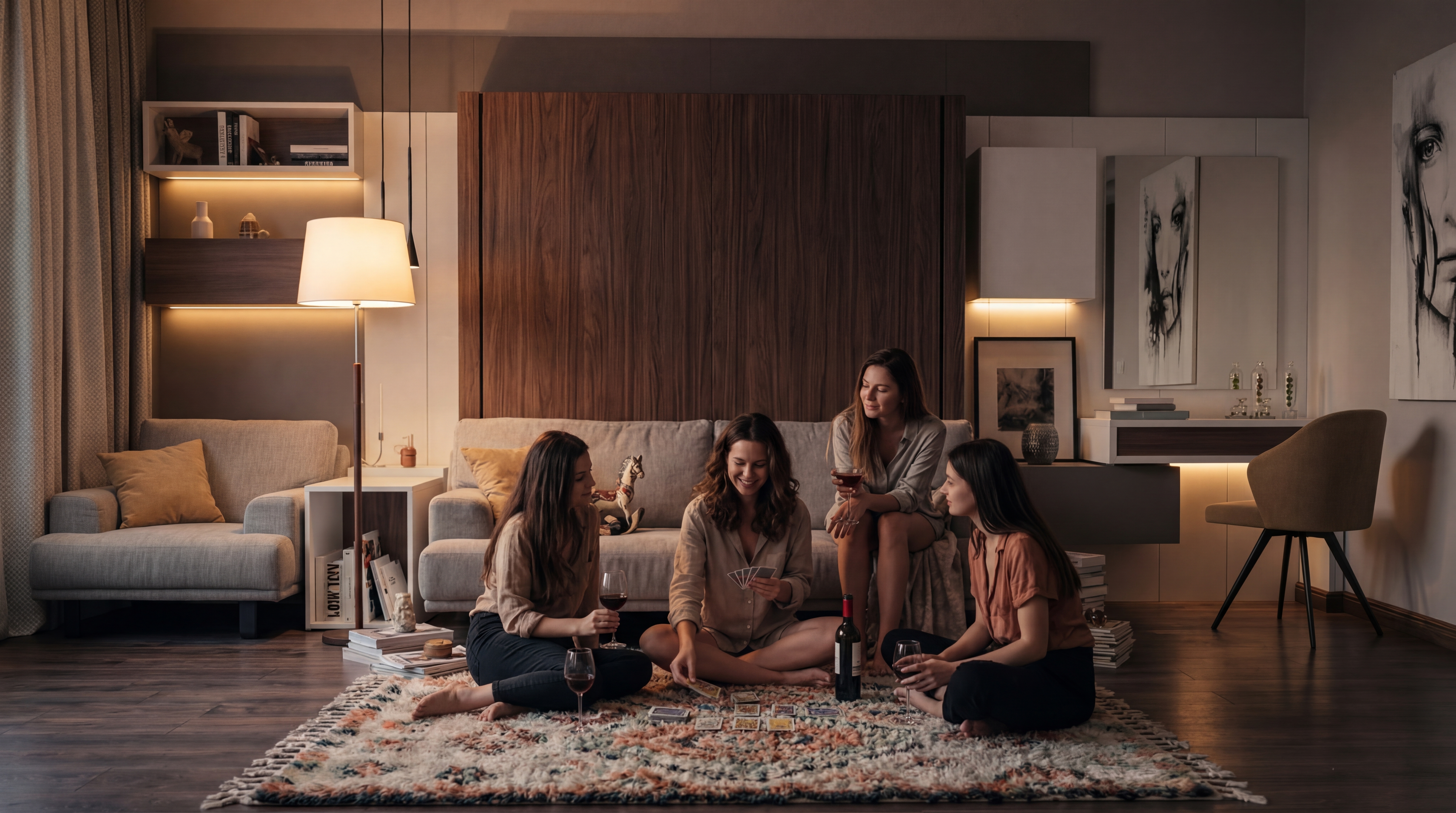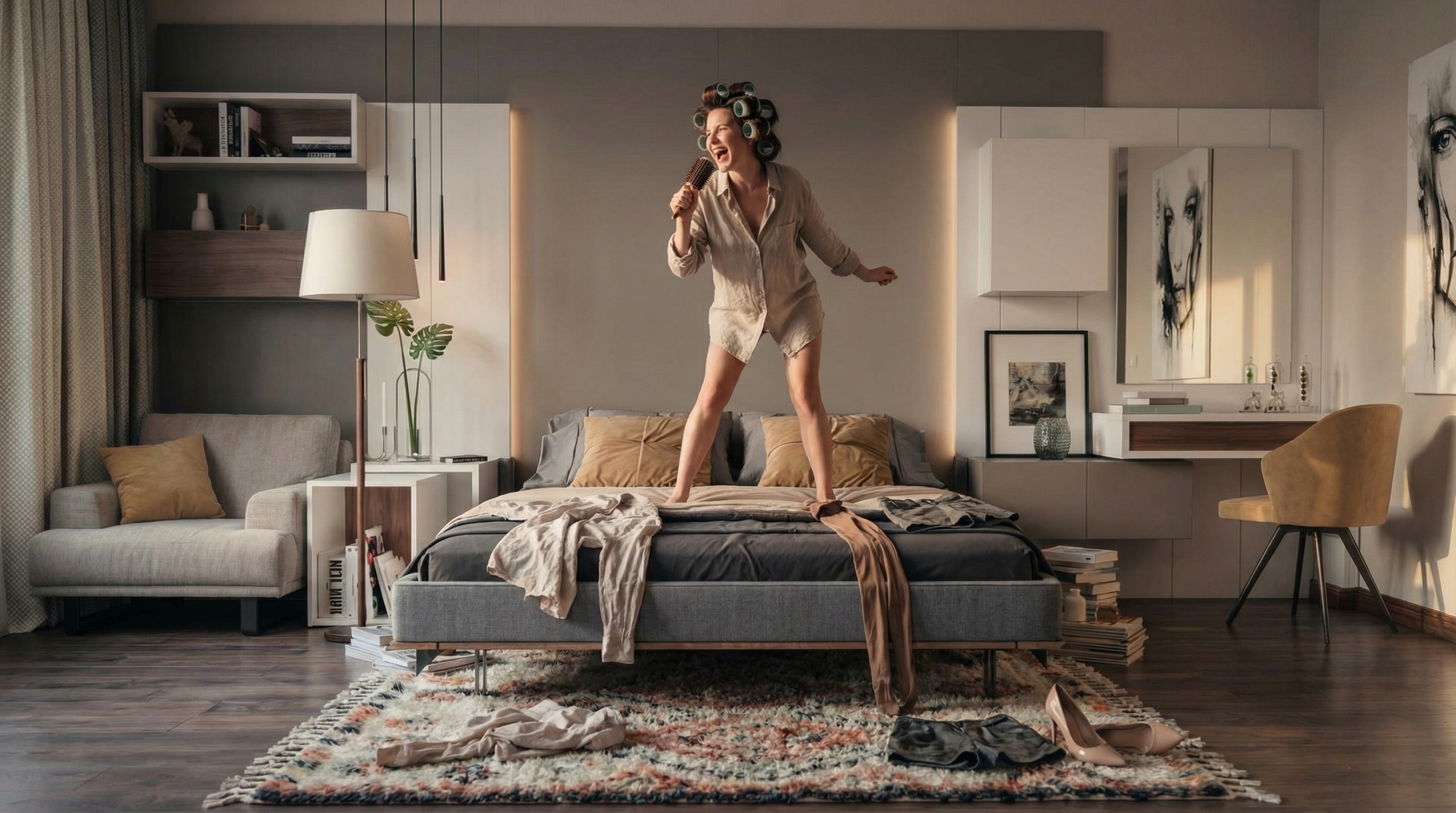 Днем кровать убирается, освобождая место для игр. Никакой громоздкой мебели — только счастливый ребенок на ковре.