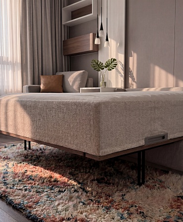Когда кровать разложена, на диване остается уютное «родительское место». Можно присесть и почитать сказку на ночь или после работы зайти пошептаться перед сном.
