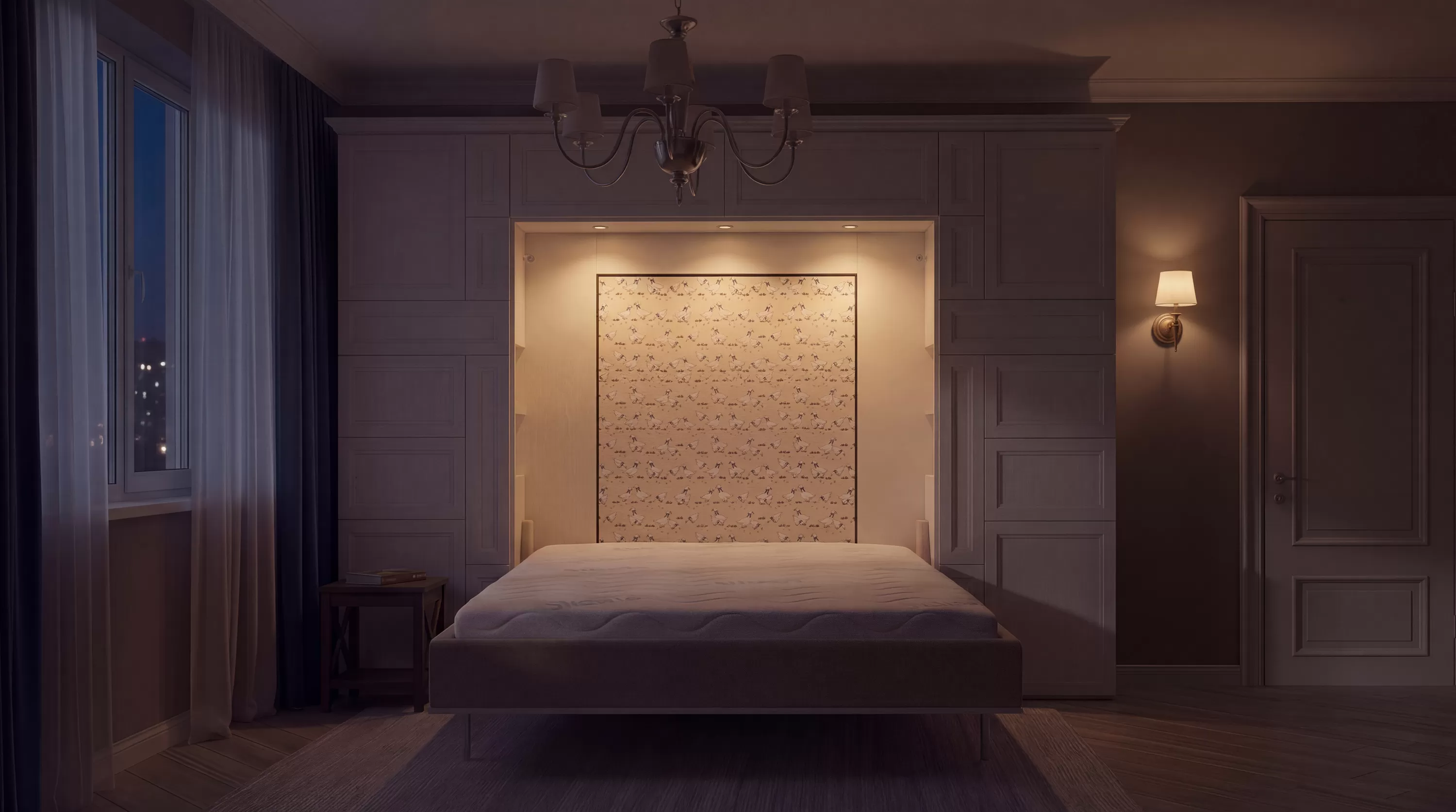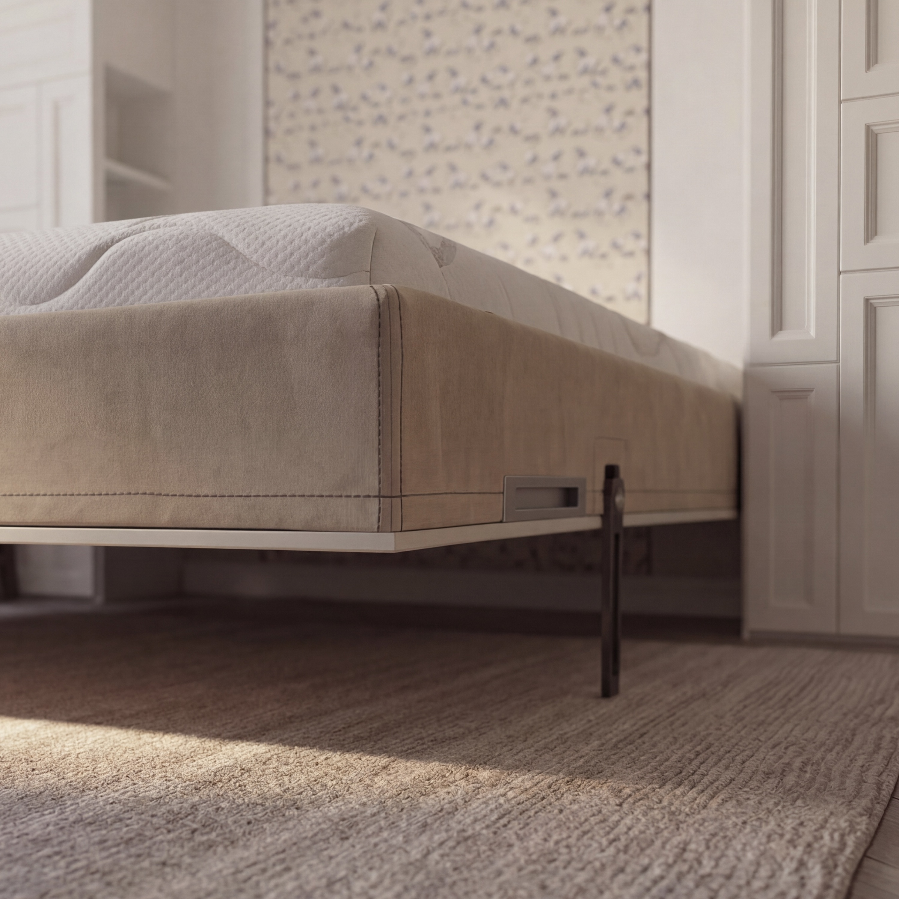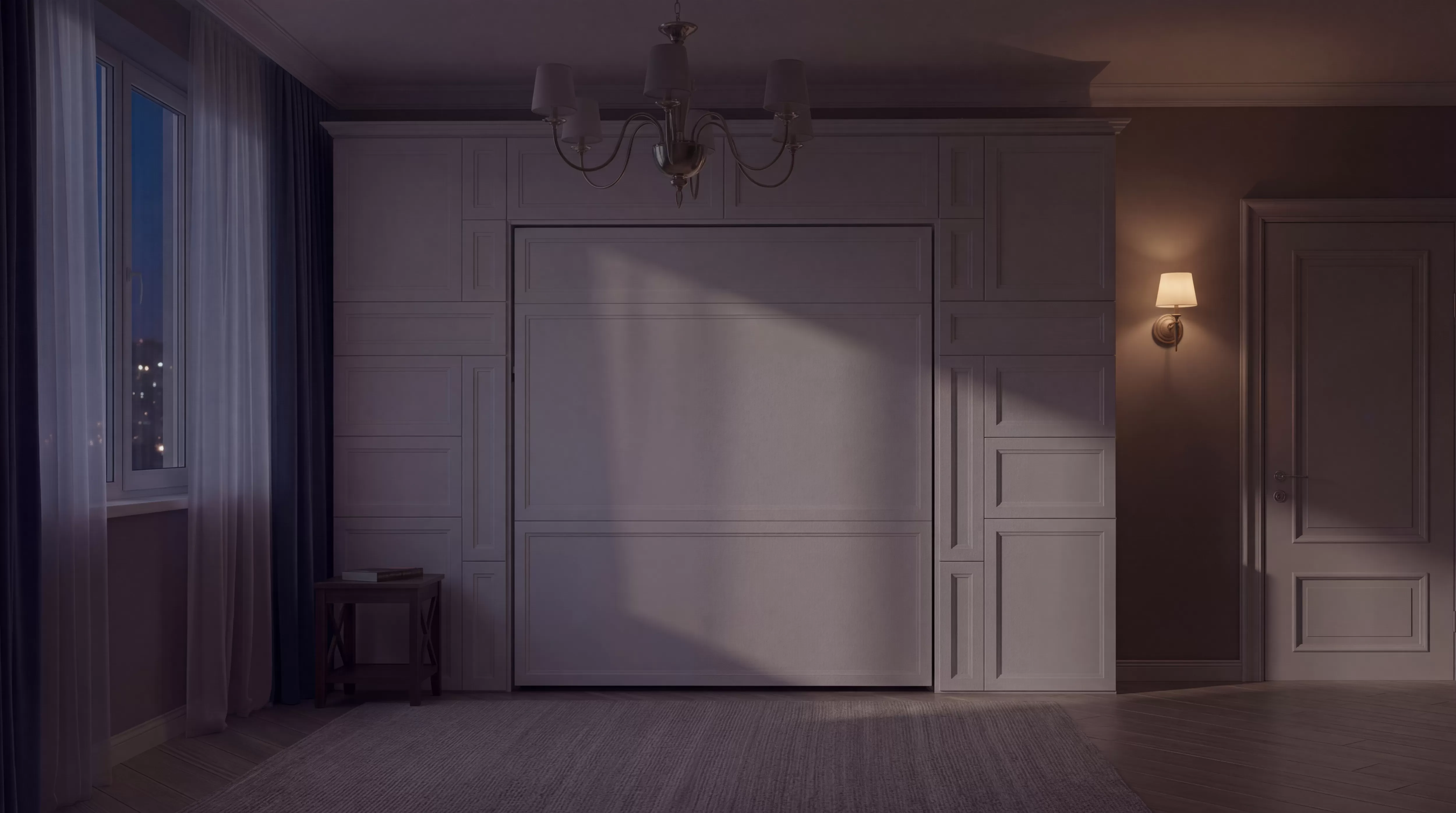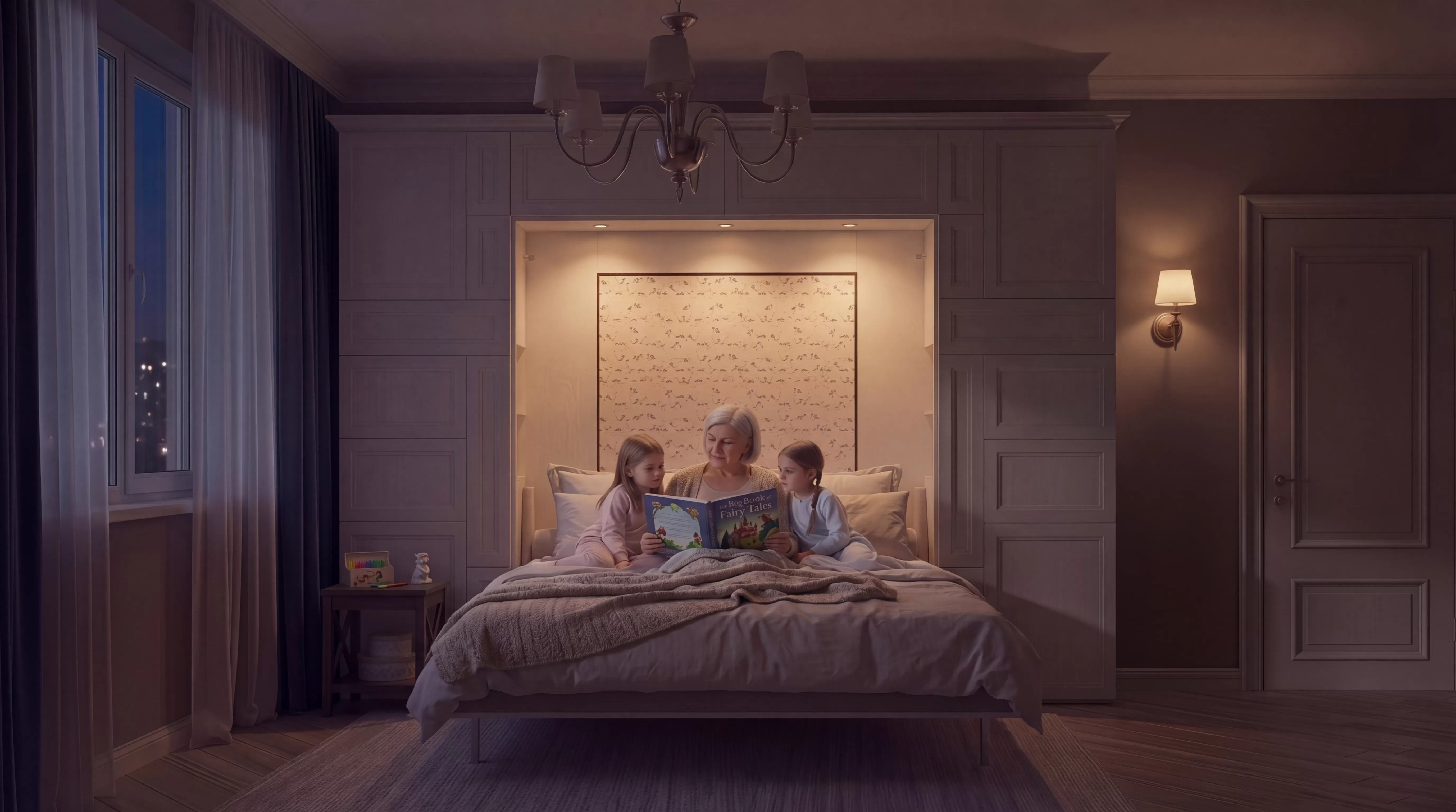 Днем кровать убирается, освобождая место для игр. Никакой громоздкой мебели — только счастливый ребенок на ковре.