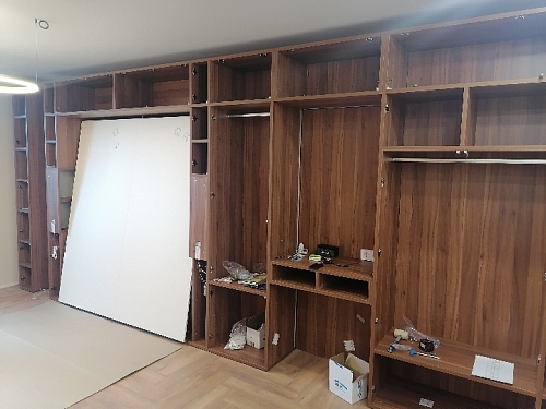 Olissys. Предложившей: качественные фасады Egger толщиной 16мм, безопасную систему открытия/закрытия кроватей, а главное - глубина закрытого модуля составляет всего 33 см. Что стала настоящим спасением для нашей малогабаритной квартиры. Доставка и монтаж осуществились в один день. Быстро и качественно.
